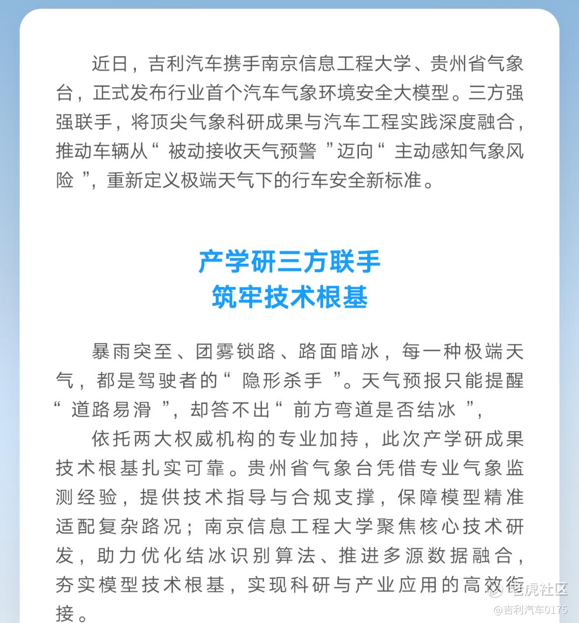 吉利联合南京信息工程大学、贵州省气象台发布行业首个气象环境安全大模型 助力全域安全能力升级