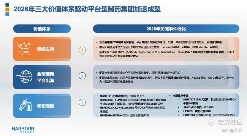 产品开发与商业化平台同步进入收获期。巴托利单抗有望于年内国内获批上市,TSLP单抗HBM9376等核心品种迎来密集临床里程碑,商业化拐点临近。此外,公司预计,2026年在IBD、减肥代谢等高价值领域提交3项IND申请,管线厚度持续提升。