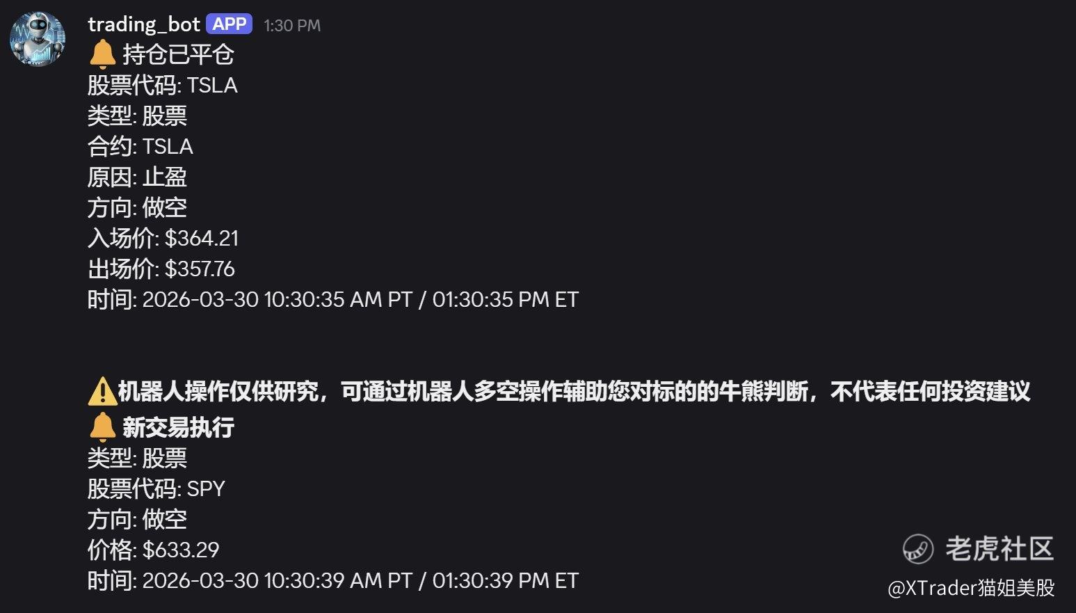 会员机器人今天(东部时间周一)做的还不错,做空SPY和TSLA,做多META,止盈离场~