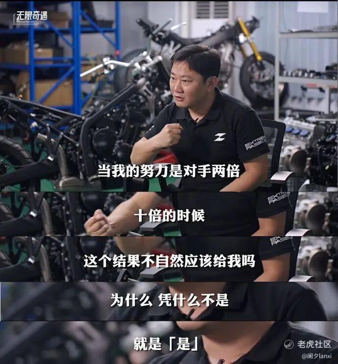 张雪说他到重庆后,第一个去的就是一个类似华强北的地方,按照自己的需求,2万块钱就攒出了一台车,用这台车换到了启动资金,公司做大之后,他要自己来做发动机,把精度从5丝压到3丝,也是能找到供应商实现这个要求。