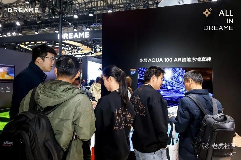 在这个同时容纳了高奢手机、豪华跑车、模拟机舱的展馆里,追觅AI智能泳镜所在的展区面积不算大,但也排起了长队。