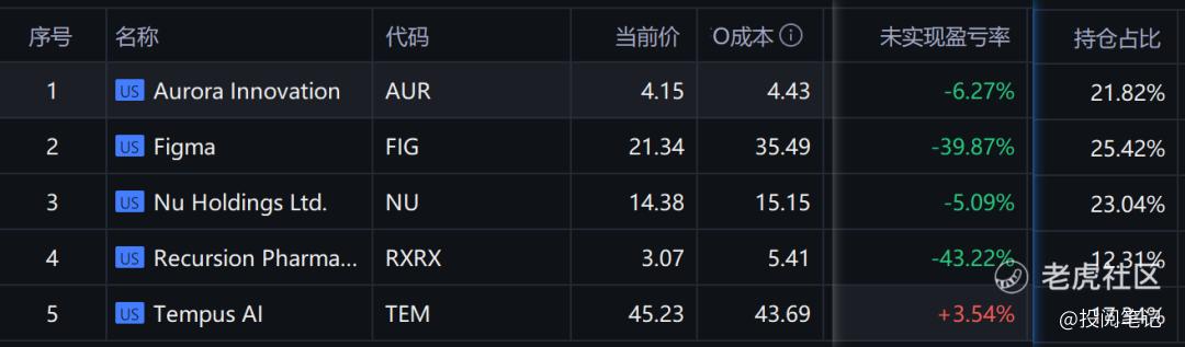 $Tempus AI(TEM)$ $Recursion Pharmaceuticals, Inc.(RXRX)$ $Figma(FIG)$ $Nu Holdings Ltd.(NU)$ $Aurora Innovation(AUR)$