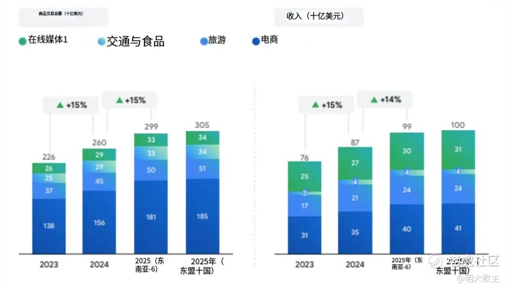 贝恩咨询、淡马锡联合发布的《2025年数字经济报告》显示,2025年东南亚地区数字经济GMV首次突破3000亿美元,达3050亿美元,同比增长15%,远高于全球电商4.2%的平均增速。