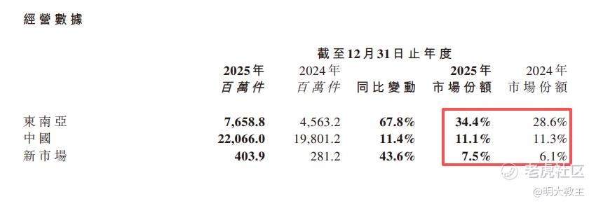 作为出海最早,海外收入占比最高的快递企业,极兔素来有“最具成长性的快递企业”之称。2025年极兔速递包裹总量首次突破300亿,来到301.3亿件,同比增长22.2%。带动 $极兔速递-W(01519)$ 2025年营收增长18.5%至121.6亿美元。