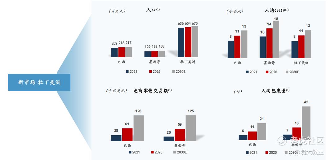弗若斯特沙利文预计巴西、墨西哥电商GMV将由2025年的610亿美元和590亿美元增至2030年的1260亿美元和1250亿美元。