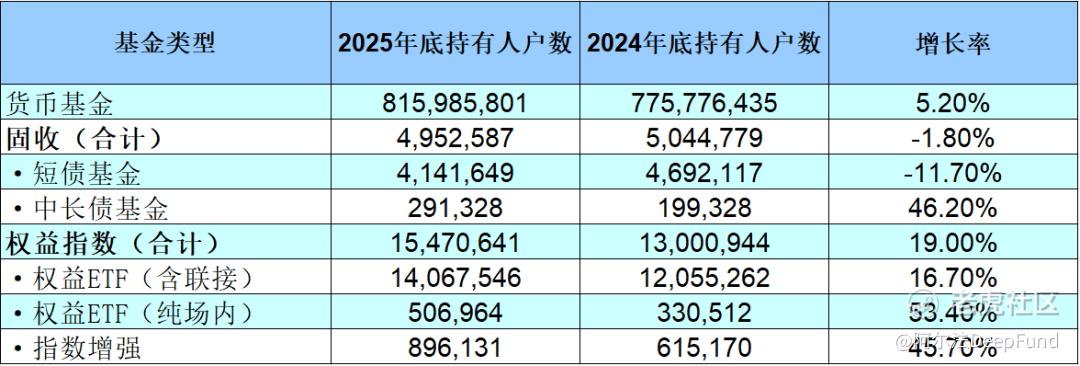 据深交所在今年2月发布的《ETF市场发展白皮书(2025年)》,2025年深市ETF持有户数达546万户,同比增长20%;上交所也在《ETF行业发展报告(2026)》中提到,2025年沪市ETF参与账户数约1000万,80后持有沪市ETF规模占比近三成。