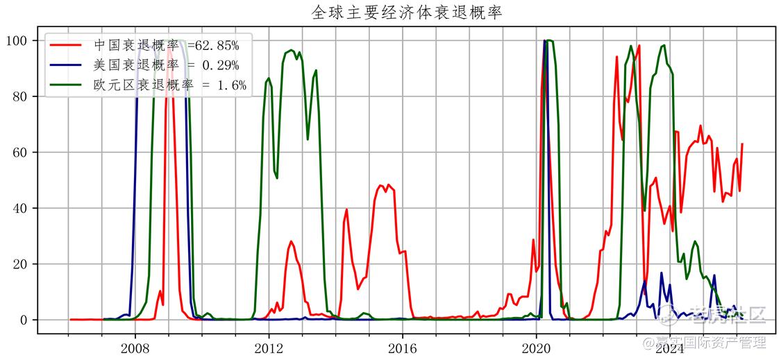 中国仍在衰退边缘;美国的衰退概率不高;欧洲走出衰退。