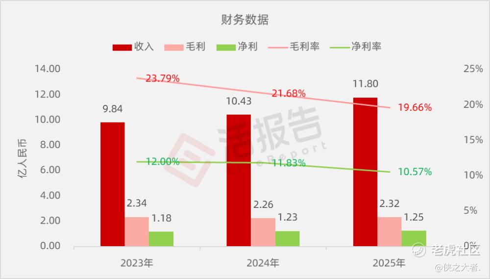 收入分别约为人民币9.84亿、10.43亿、11.80亿,2025年同比+13.15%;