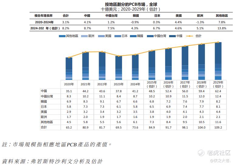 根据弗若斯特沙利文(Frost & Sullivan)的报告,全球PCB市场规模由2020年的约652亿美元增长至2024年的约736亿美元;预计到2029年,全球PCB市场规模将达约1,092亿美元。