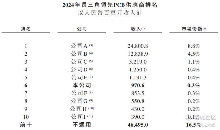 根据弗若斯特沙利文报告,按收入计,2024年公司在中国PCB制造商中排名第42位,在长三角地区排名第6位。