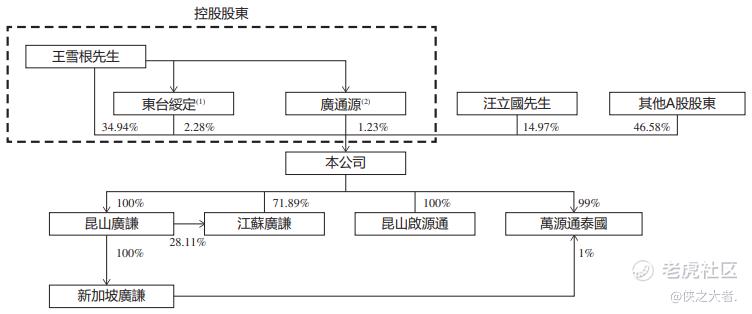 王雪根先生直接持股34.94%,并通过东台绥定、广通源分别持股2.28%、1.23%,合计约38.45%;汪立国先生持股14.97%;其他A股股东合计持股46.58%。
