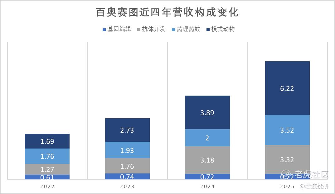 目前的营收结构展现了百奥赛图的业务布局:通过销售独特的药物评价动物模型,吸引全球客户使用其配套的药理药效评价服务;逐步向药物发现价值链上游的抗体开发业务演进。