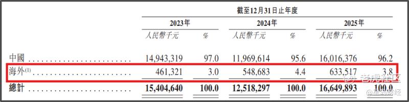 尽管客户遍布全球,但公司海外收入占比却长期处于低位,2025年海外收入仅6.34亿元,占总营收比例为3.8%,收入主要来源于东南亚、美国及韩国市场。