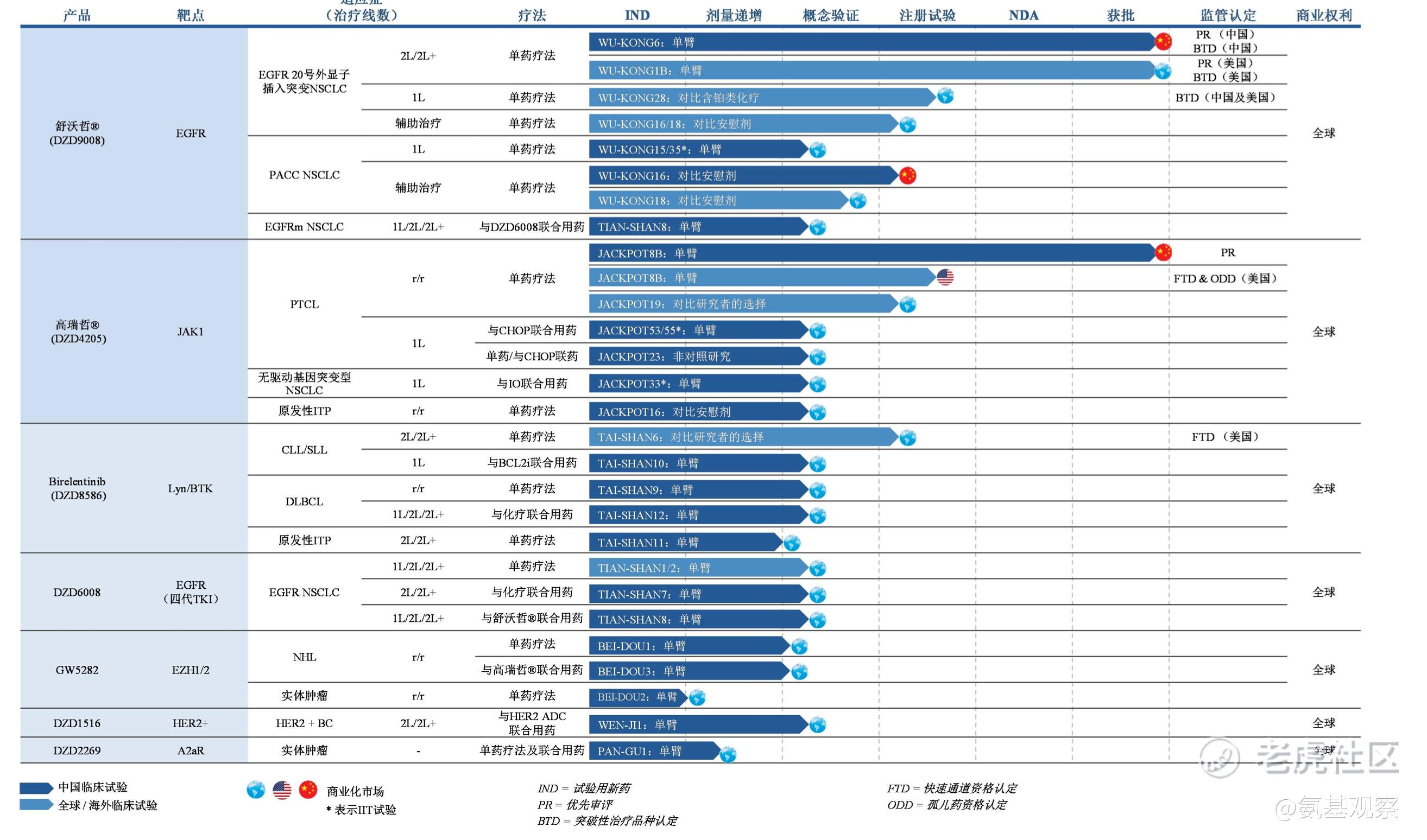 不同于多数创新药企仍停留在“海外授权”的浅层出海,迪哲医药的全球化,不仅全程自主推进,且多款核心管线已进入关键期。例如,舒沃替尼用于EGFR 20ins/PACC 突变 NSCLC 根治术后辅助治疗的III期临床(WU‑KONG16)、LYN/BTK双靶点抑制剂DZD8586 针对复发/难治慢性淋巴细胞白血病/小淋巴细胞淋巴瘤(r/r CLL/SLL)获FDA“快速通道认定”,并已开展国际多中心III期临床。