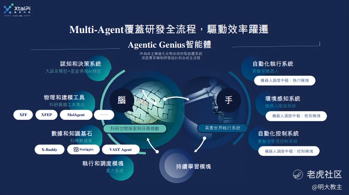 晶泰控股构建了行业独有的“AI模型预测+机器人执行湿实验+数据反哺AI+Multi-Agent智能调度”研发闭环,可7 ×24小时高通量执行实验并积累高质量数据,为药物、新材料研发构建了新范式。