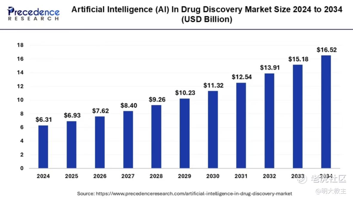 Research等一些更乐观的机构则认为2030年前后全球AI制药市场规模就会突破百亿美元。