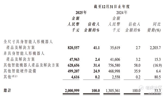 换句话说,2025年公司整体营收的增长,完全依靠人形机器人单一业务线拉动。
