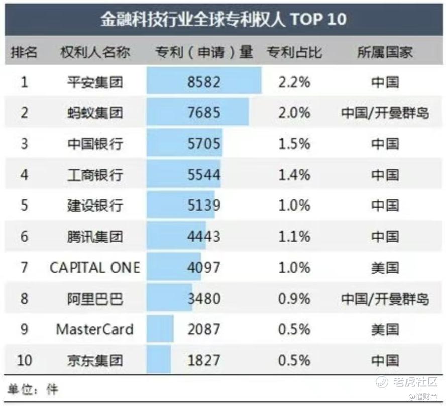 据国家知识产权局研报,其位居金融科技行业全球专利权人Top1。