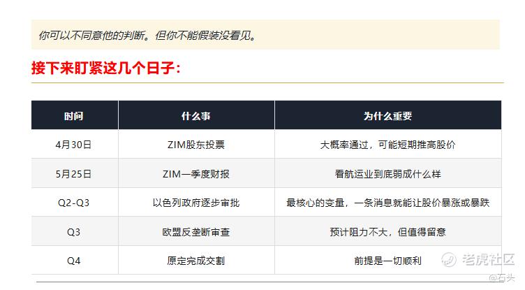 4月30日,ZIM的股东们将在海法总部投票。这一关大概率会过,58%的溢价摆在那里,没有几个股东会跟钱过不去。
