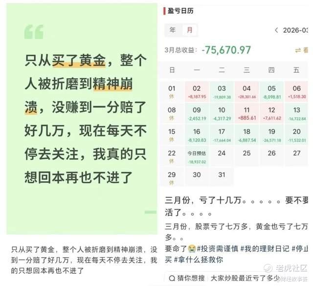 “自从买了黄金,整个人被折磨到精神崩溃,还亏了好几万”。