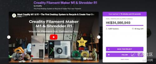 令人震撼的是,项目上线仅20分钟,众筹金额便突破1000万人民币,首日破3000万人民币,吸引3500多位全球支持者,迅速跻身平台年度最热门项目。这款桌面级材料回收与生产系统是创想三维构建完善3D打印生态圈的重要里程碑,持续引领全球3D打印产业向绿色、自主、创意方向升级。