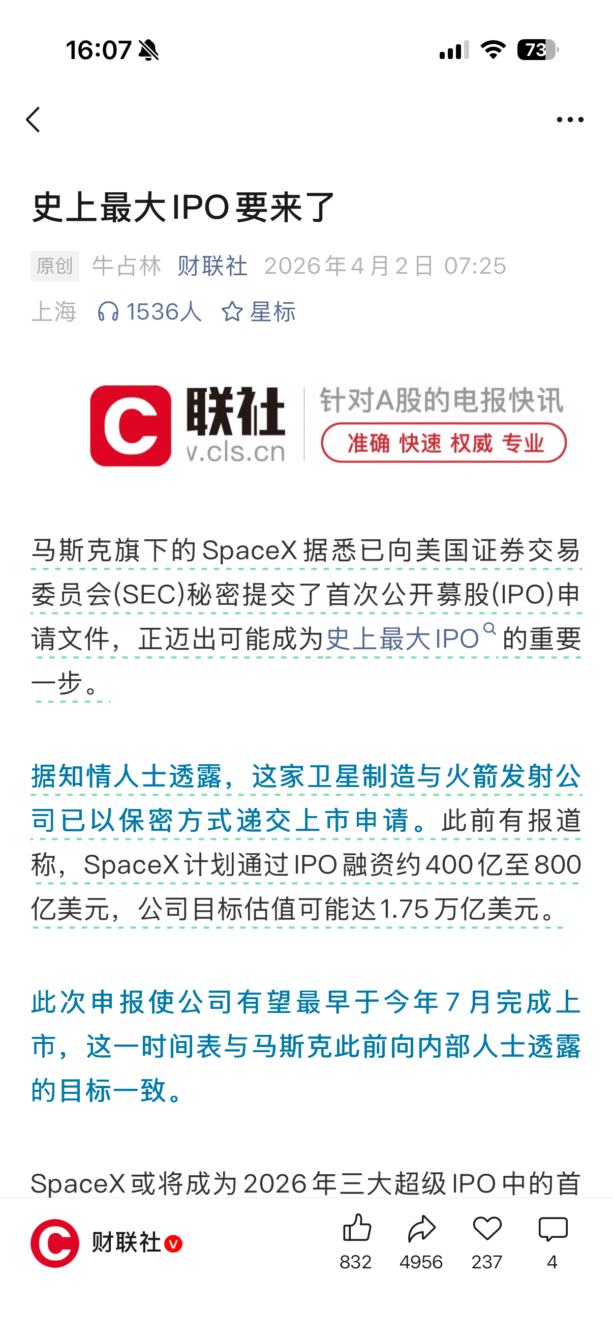 Space X会在6月30号前上市吗?