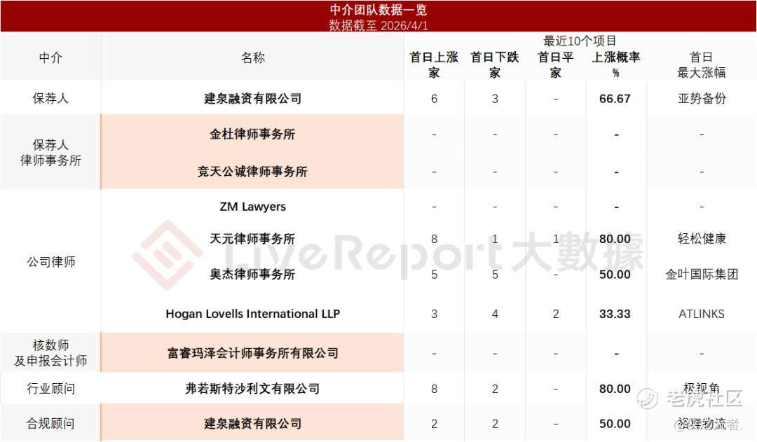 据**大数据统计,焦点国际中介团队共计10家,其中保荐人1家,近10家保荐项目数据表现普通;公司律师共计4家,综合项目数据表现有待提升。整体而言中介团队历史数据表现中规中矩。