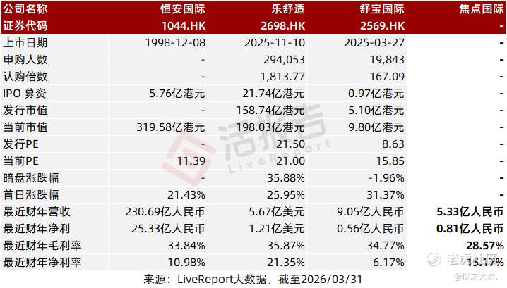 同行业IPO可比公司:恒安国际(1044.HK)、乐舒适(2698.HK)、舒宝国际(2569.HK)