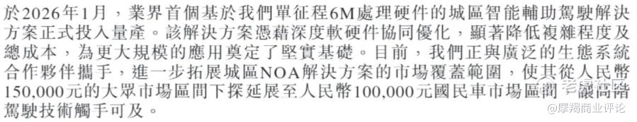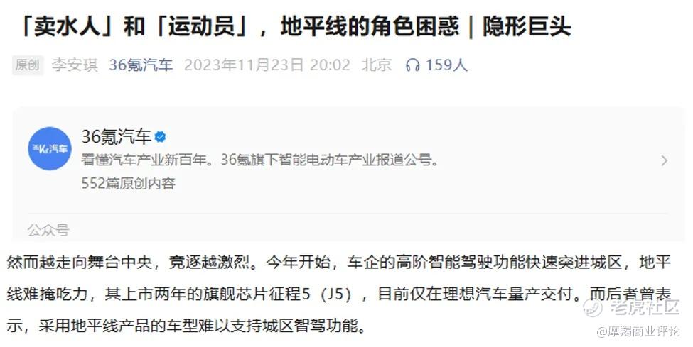 “车企的高阶智能驾驶功能快速突进城区,地平线难掩吃力,其上市两年的旗舰芯片征程5目前仅在理想汽车量产交付;采用地平线产品的车型难以支持城区智驾功能。”