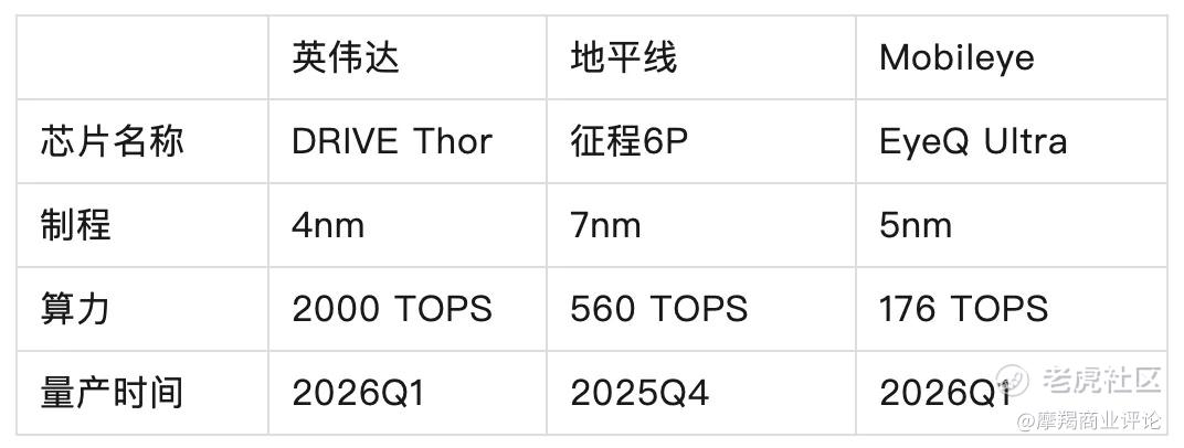 三家企业的高端旗舰智驾芯片的参数对比
