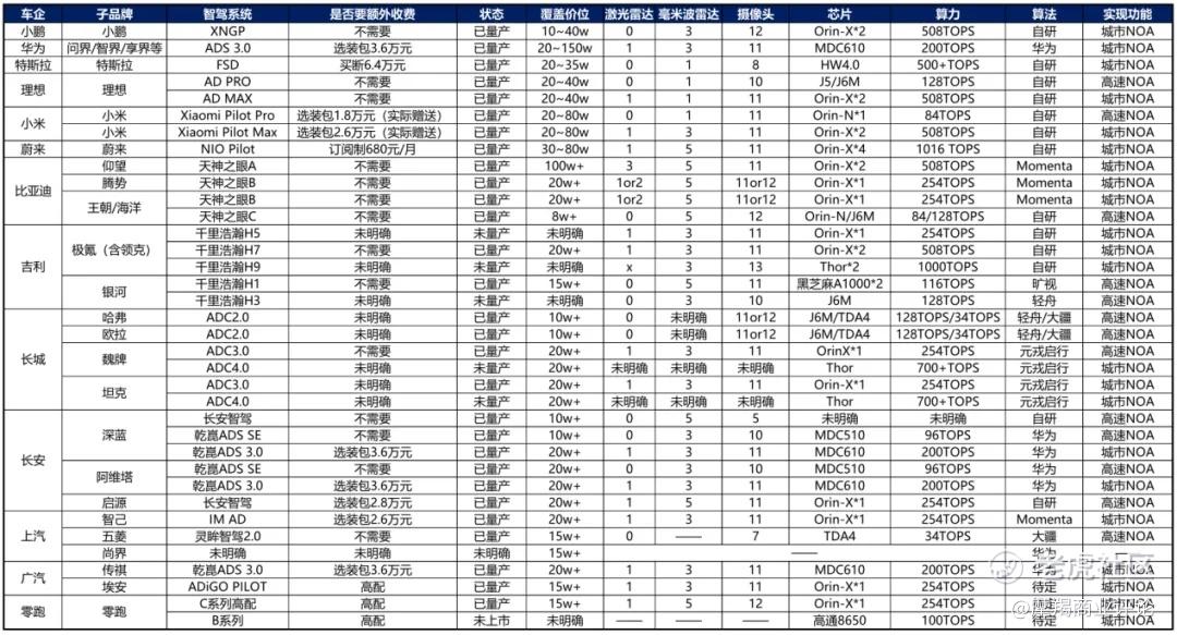 国内主要车企的智驾方案情况(截止2025年3月),来源:东吴证券