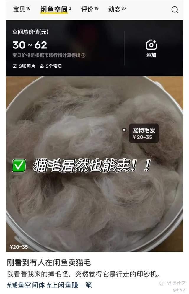 传统电商是B2C逻辑,要有标准的SKU、品类归属才能进入货架体系。但闲鱼属于C2C,没有设置相应的门槛,大量长尾品、非标品和低价小物在平台涌现,承接住了用户碎片化的、甚至有点荒诞的真实需求。比如在闲鱼上有人卖一坨猫毛、一片银杏叶、发霉的橘子、爱因斯坦的脑子......只要有人愿意挂、有人愿意买,它就是用户所需要的商品。万物皆可交易,任何需求到了闲鱼这都有可能变成生意。