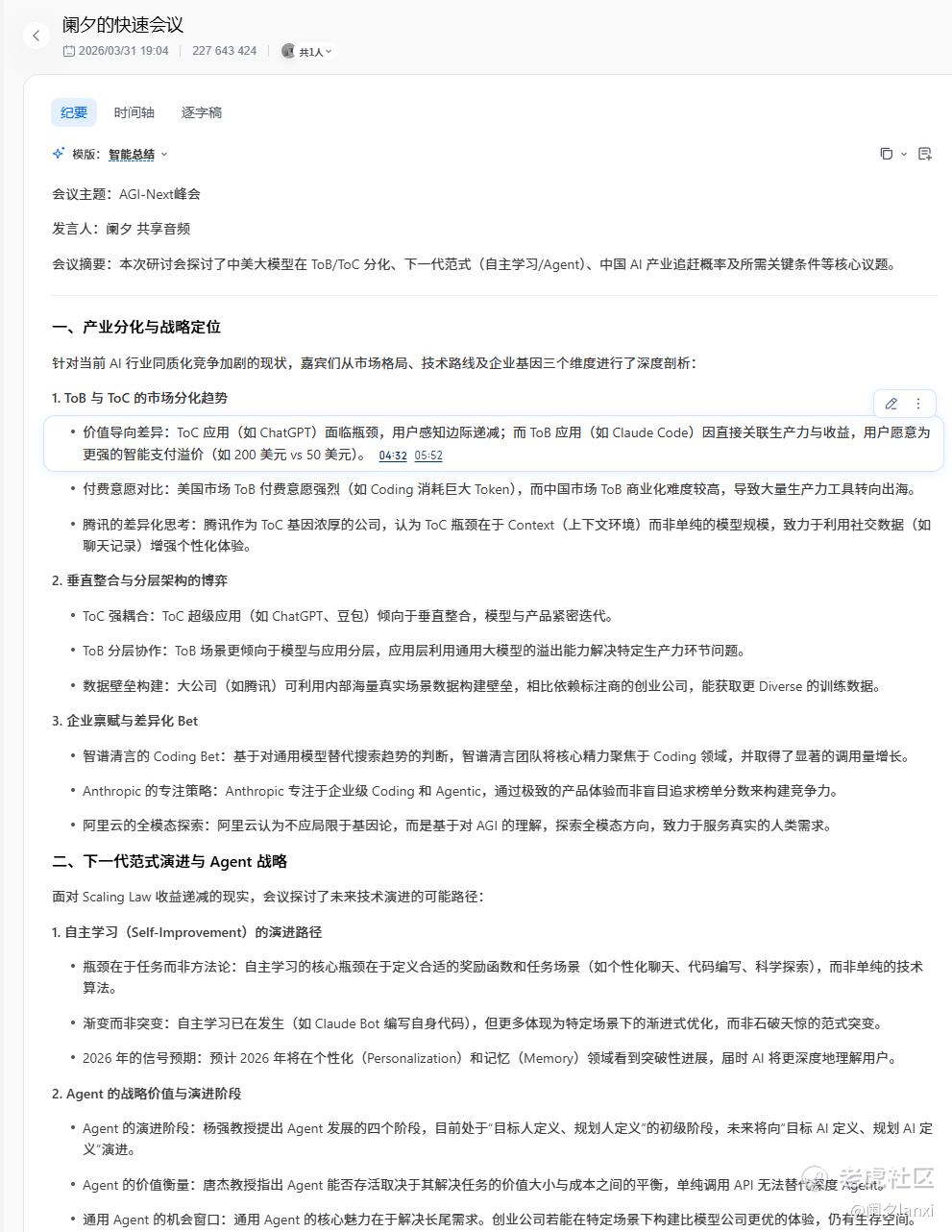 我录制了年初那场AGI-Next峰会的完整版,拿「智能总结」模板举例,根据不同的信息密度,腾讯会议提供了多种会议内容重组的选项: