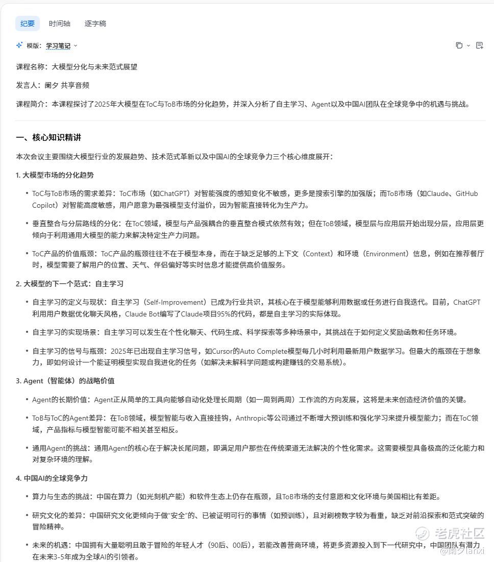 但二八定律是结果,而非原因,真正把用户困在信息围城里打转的,是市面上多数会议产品还在自上而下的流水账式速记里摸索,无法满足真实存在的个性化需求。