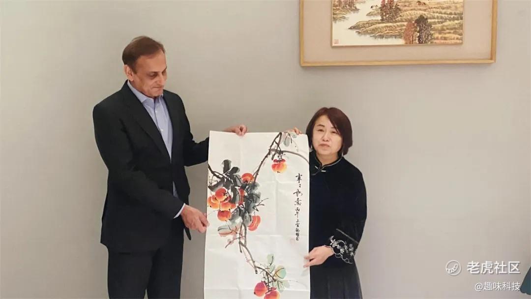 考察交流尾声,为进一步增进中巴文化交流,传递中国传统文化魅力,当代书画家上官钰煊向该贵宾赠送水墨珍品《柿柿如意》。画作以饱满红润的柿子为核心意象,既承载着对中巴两国“事事如意”的美好期许,也传递出双方坚韧进取、共促繁荣的精神共鸣。