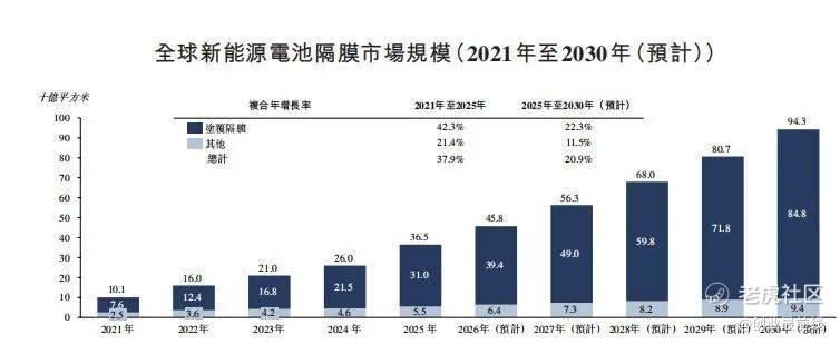 在储能电池市场规模大爆发的背景下,涂覆隔膜市场规模也在大幅上升。2025年,全球涂覆隔膜市场规模为310亿平方米,同比增长近28%。