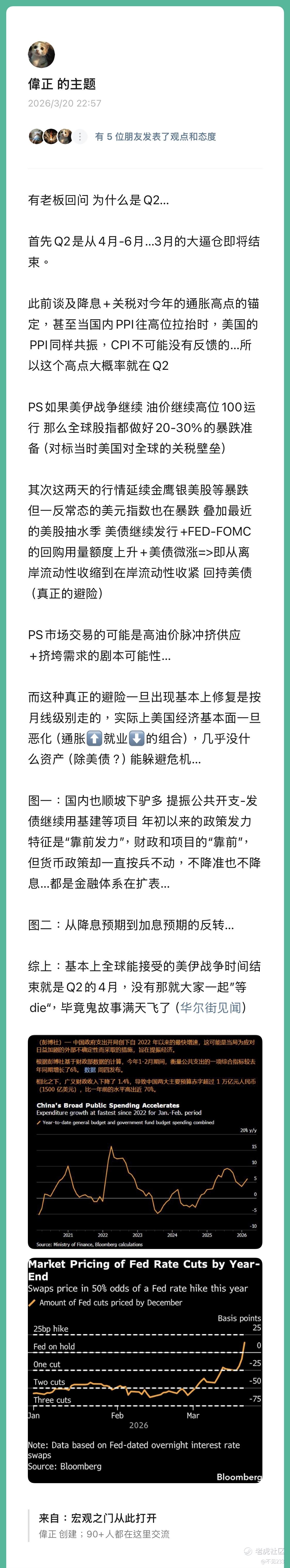 当然从现在110+的美油+布油、6500一带的SPX而言,还没有充分定价久期的战争升级的可能、以及日后霍尔木兹海峡重新通行的时间/经济成本。