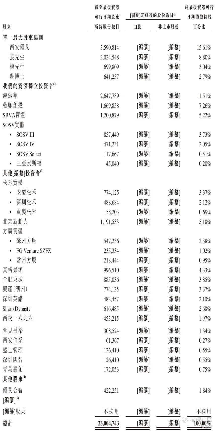 IPO前,西安优艾持股为15.61%,张朝辉持股为8.8%,梅雪松持股为3.04%,边博士持股为2.79%。海纳华持股为11.51%,蓝驰创投持股为7.26%,SBVA实体持股为5.22%,SOSV III持股为3.73%,SOSV IV持股为2.05%,SOSV Select持股为0.51%,三亚索斯福持股为0.2%。
