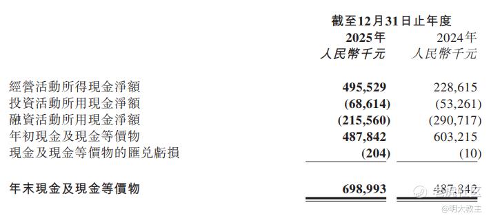 雍禾医疗再次展现“现金奶牛”的实力。2025年雍禾经营现金流净流入4.955亿元。