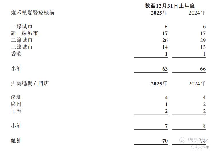 2025年雍禾医疗继续采取“提质增效”策略,门店数量(雍禾植发+史云逊养发)较2024年下降4家。