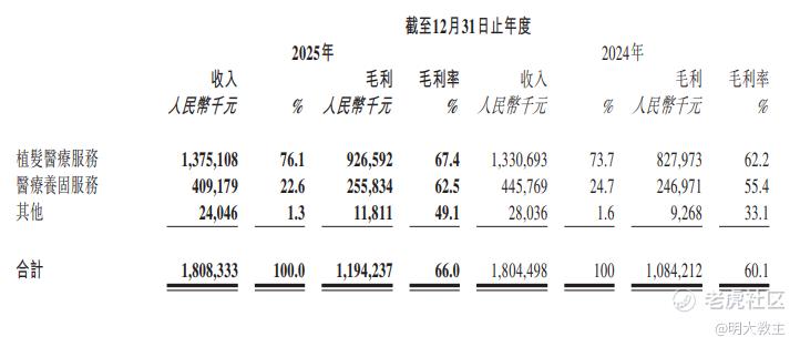 2025年雍禾植发服务客单价虽有所下降,但手术标准化流程优化的降本效果更可观。2025年雍禾植发、医疗养固毛利率分别为67.4%和62.5%,同比分别提高了5.2个百分点和7.1个百分点。雍禾整体毛利率也由2024年的60.1%升至66%。在业绩发布会上,雍禾医疗高管表示随着内控继续深化,植发、养固毛利率有望升至70%+和65%+,雍禾“好生意”的属性仍在。