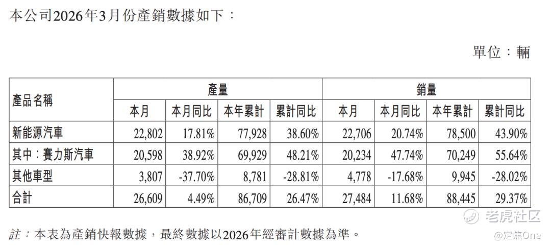 问界品牌是其核心构成,其3月销量可大致作为问界当月表现的参考。