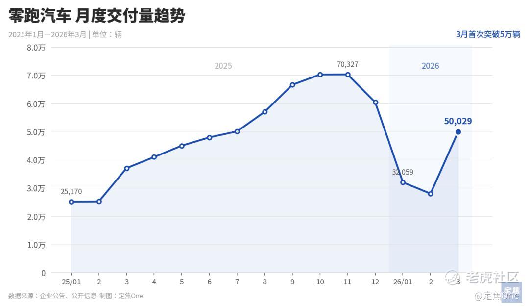 2026年初,新能源汽车购置税政策恢复至5%征收,以及以旧换新补贴方式调整,两项政策叠加,对15万元以下价格敏感市场,造成了一定的压力。零跑管理层在此前财报会上明确表示,1-2月被抑制的需求将在后续释放。从3月的表现看,这个判断部分得到了验证。