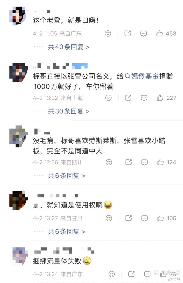 有网友在张雪评论区称:“标哥这个车应该不会过户,给你用。”没想到性格张雪又来了一条极其耿直的回复。