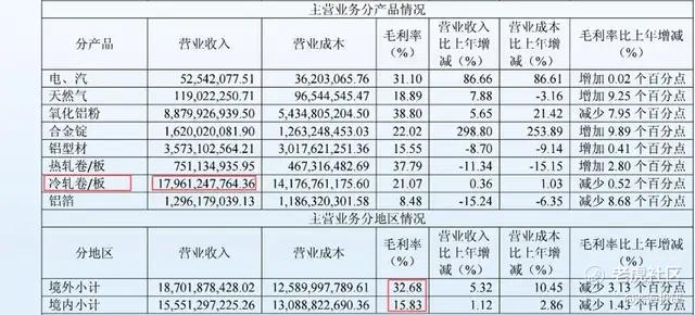 而这种模式决定了它必须把成本控制到极致。它的基地在新疆石河子,那里有便宜的煤炭,天山就自己建电厂发电,度电成本远低于行业平均。这种“家里有矿,电厂自备”的一体化布局,就是它最硬的护城河。不过,这种模式也有代价,就是市场相对封闭。财报显示,天山铝业98.64%的收入都来自国内,海外业务占比微乎其微,这让它很难享受到全球高端市场的高溢价。
