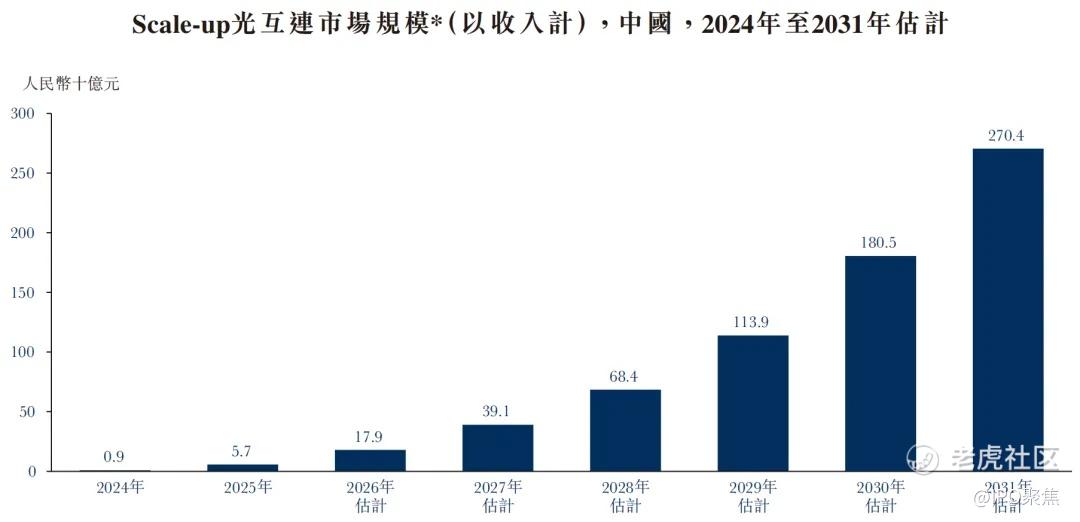 据弗若斯特沙利文数据,中国Scale-up光互连市场规模预计从2025年的57亿元增长至2030年的1805亿元,复合年增长率接近100%。