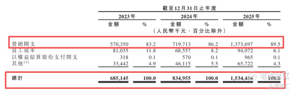 可高速增长的背后,是烧钱换规模的沉重代价。2025年,小阔科技销售及分销开支飙至超15亿元,其中约14亿元都砸在了营销上。亮眼的营收增速,建立在对流量近乎不计成本的采购之上。