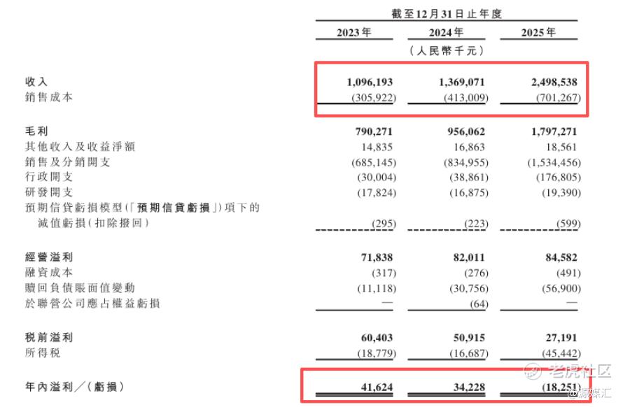 2026年3月末,参半母公司小阔科技向港交所递交招股书,揭开了这场增长背后的代价。2025年,公司营收冲到24.99亿元,同比大增82.5%,净利润却亏损1825万元。华晨宇带来的热度确实拉动了公司营收,却也在持续侵蚀着利润。