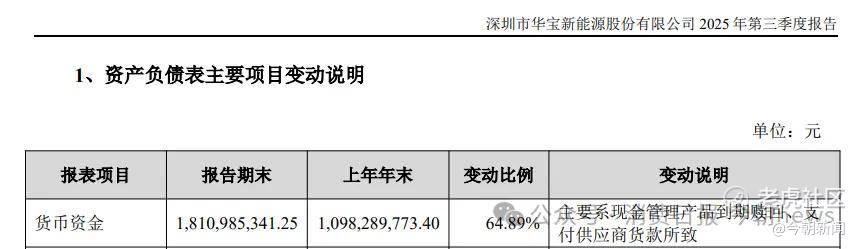 业绩大幅波动背后,资产结构与现金流状况形成鲜明对比。截至2025年9月末,华宝新能资产合计74.96亿元,负债12.95亿元,资产负债率17.28%,账面货币资金18.11亿元,资本结构相对稳健。