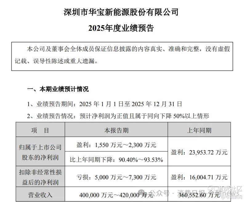 2026年1月30日,华宝新能发布2025年年度业绩预告,呈现出鲜明的“营收增、利润跌”态势。